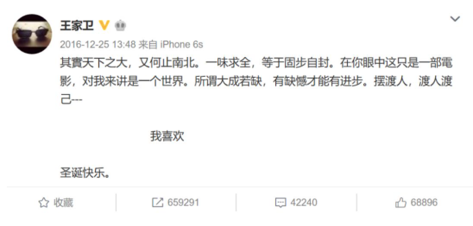前几年,王家卫的力作《摆渡人》被称为跌穿底线的烂片。这部影片豆瓣评分仅4.0,与王家卫的豆瓣8.8分的《重庆森林》差距极大。《摆渡人》的摄影鲍德熹后来称“《摆渡人》是王家卫的试验作品”,但这也掩盖不了该影片输得彻底的事实。