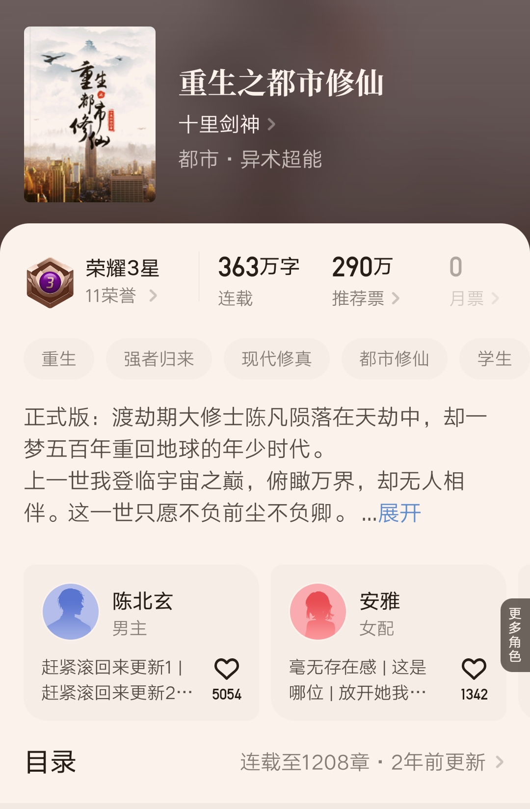 不过当初这本小说确实火,甚至可以说是四本小说里最火的。它算是都市修仙文的集大成者,十里剑神也一书封神,带火了很多跟风者。