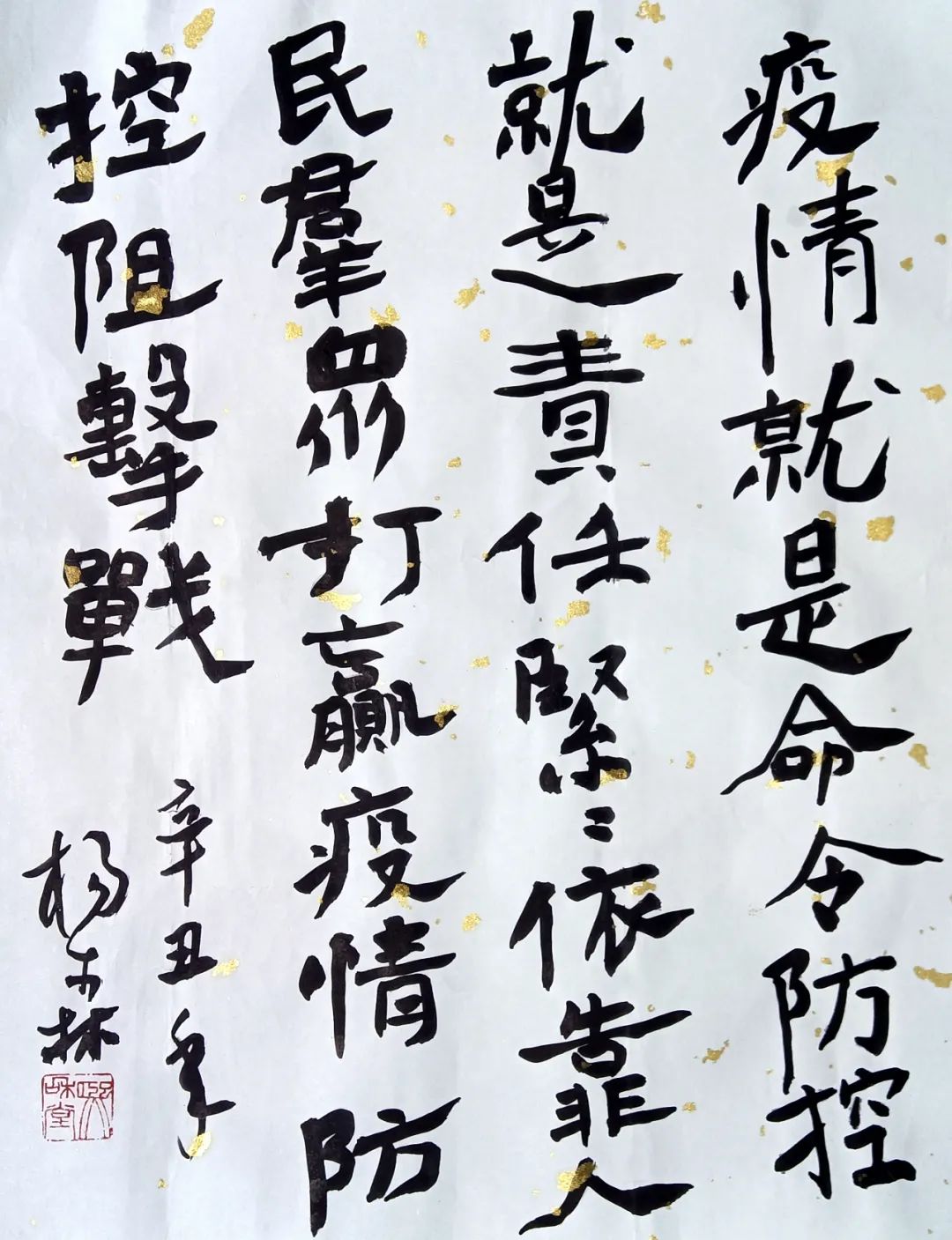为做好疫情防控工作,传播社会正能量、讴歌时代真英雄,鼓舞士气、振奋精神,白银市书法家协会号召在银各级书协会员围绕抗疫主题创作书法、篆刻作品,为疫情防控鼓劲加油,为坚决打赢这场没有硝烟的战争贡献力量!