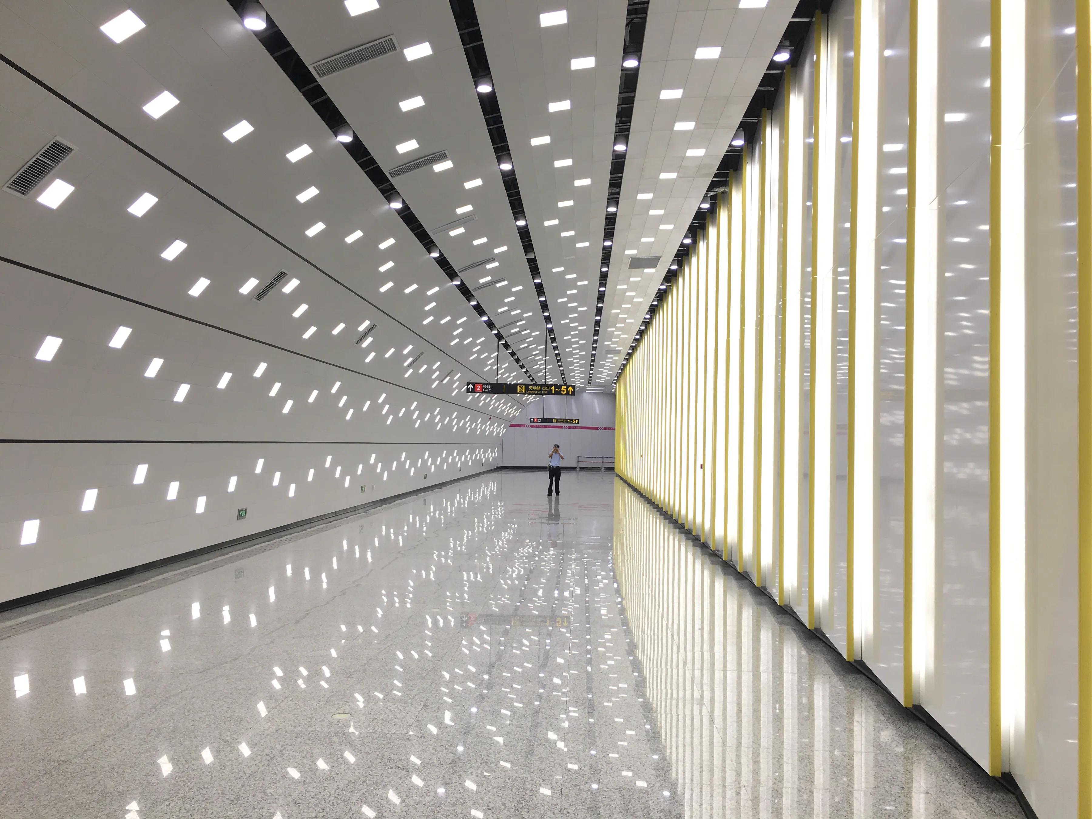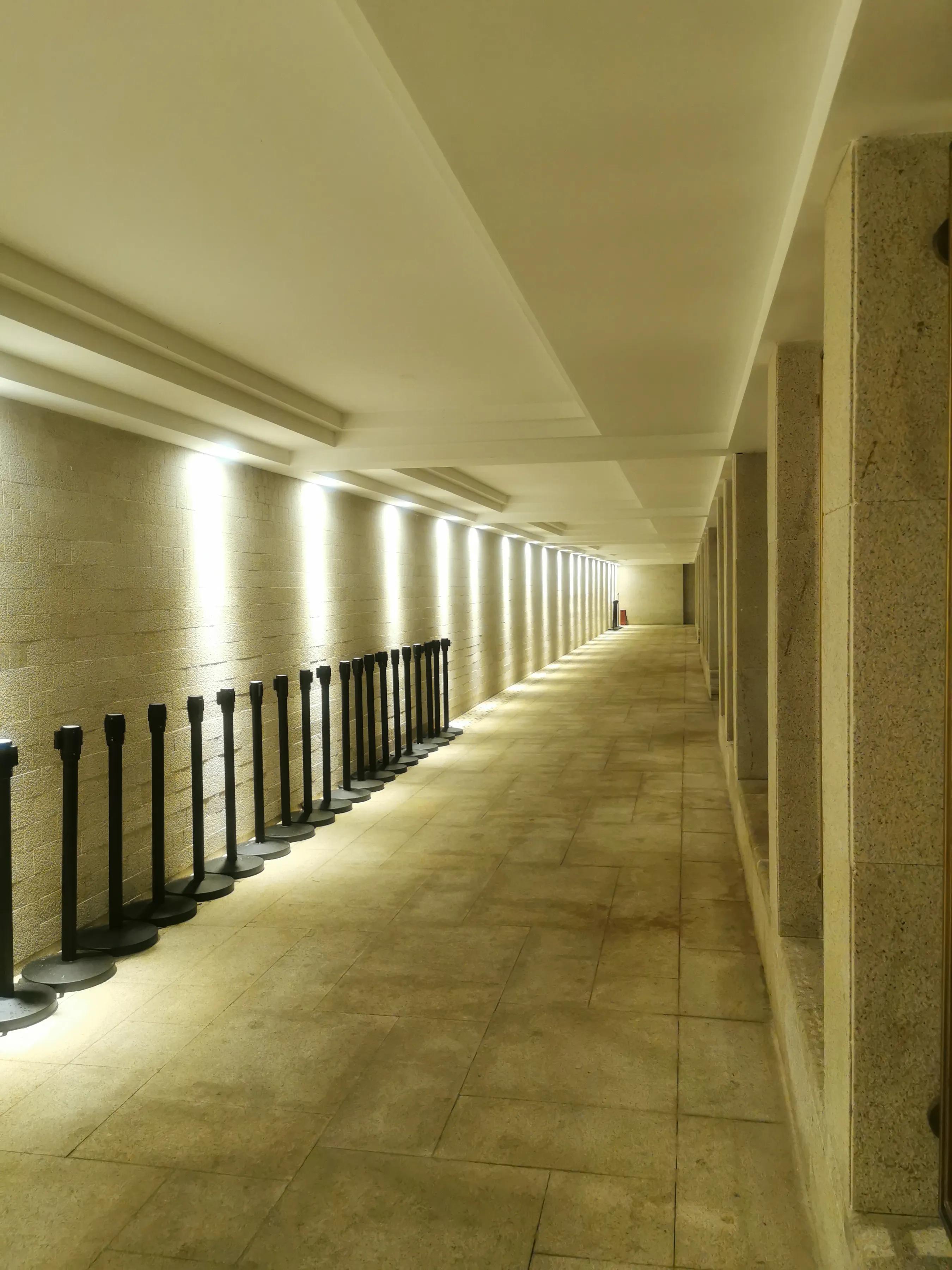 说明:光影立柱的重复序列构成建筑的韵律之美。