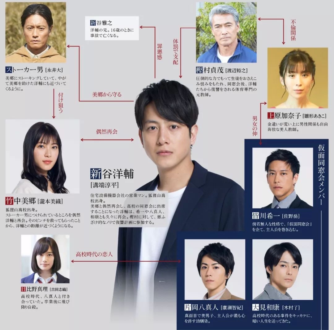 当年出演了真人版“工藤新一”的沟端淳平不少观众都印象深刻吧,但好像一直以来并没有大火,《假面同学会》是他久违的担任连续剧主演,共演的有泷本美织、佐野岳、木村了、广濑智纪等。