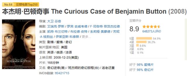 但是因为有爱,所以不会孤单。最终,本杰明躺在在年迈的黛西怀里,是一个婴儿模样,在他闭眼的那一刻,他可能认出了他的挚爱,在爱人的怀里安详离开世界。