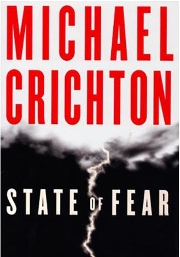 这位身高两米零六的“高人”,自从1969年以真名发表长篇小说《安德洛墨达品系》(the adromeda strain又译《天外细菌》)至今,已创作了15部畅销小说,全球总销量超过1亿5千万册。他所取得的惊人成就如同他的身高一样,在当今世界书坛总是显得卓尔不群。就连政治家们也将迈克尔·克莱顿的作品奉若圭臬:2005年9月,克莱顿受邀在美国国会为“全球变暖是有史以来对美国人民最大的欺骗”作证。就在前一年,他刚刚推出了一部惊悚小说《恐惧状态》(state of fear,又译《恐惧之邦》)。该书说的是一群“全球变暖论”激进分子发动了若干起环境恐怖袭击事件,不惜伤亡大量人员,以引发世人认同全球变暖危机论点并进而接受其各种激进主张。本书首印即高达150万册,一度成为亚马逊网络书店畅销书冠军。书中附带大量气候学环境学注释、图表和数据,以及两组专业附录和20多页的专业书籍参考书目,因其具备的高度科学性而成为“全球变暖论”反对者手中的有力武器。