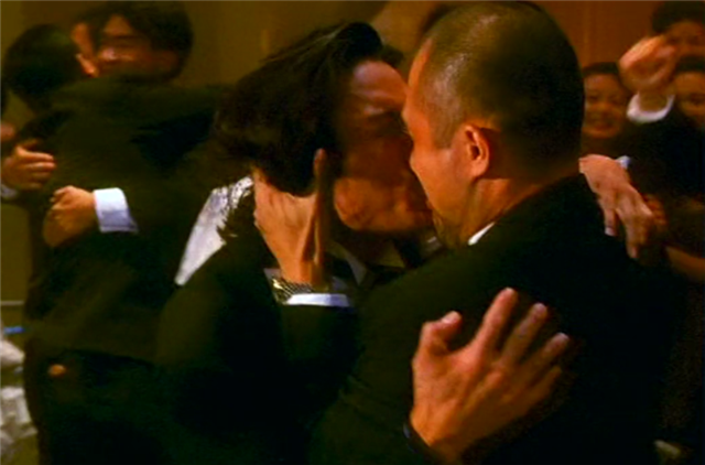 《赌神2》当年终结周星驰的四连冠纪录,斩获5252万港币,成为1994年香港电影票房冠军。相比第一部而言,增添了许多搞笑元素,而梁家辉和徐锦江就是搞笑二人组,尤其是被仇笑痴追杀那段,两人一个装成雕像,一个藏在钟表里面,当年差点笑喷过去。还有最后赌神高进和仇笑痴对决的时候,两人的对话也意味深长,反正小时候比较单纯。最难得的是,两人竟然还亲上了,不知道他们这次参加节目还能记得曾经甜蜜的回忆不?