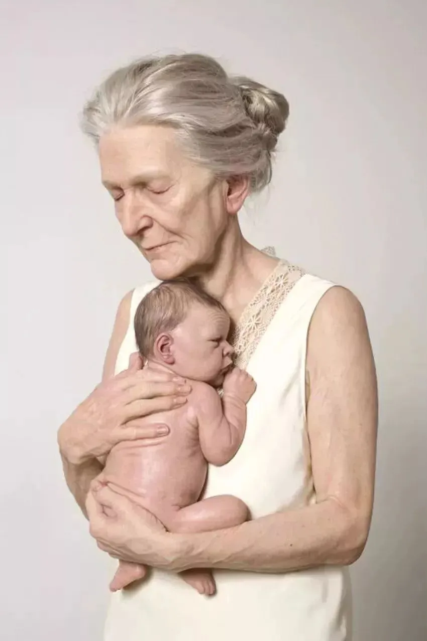 而让·穆克k的雕塑主题,一直围绕着探索人类的整个生命周期展开,涵盖出生、青春期、生殖、中年、老年和死亡,呈现人类生命中的冲突、矛盾和痛苦。