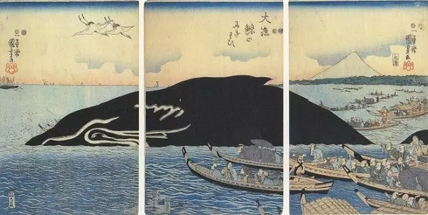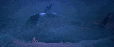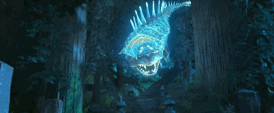 「化鲸」是日本传说中海上的一种妖怪,也称「骨鲸」。类似一个鲸鱼骨架,据说任何看到它的人都会带来不幸。不过在《魔弦传说》中,久保和猴子是在一头冻死的鲸鱼腹中躲避暴雪,只是造型上与「化鲸」相像。