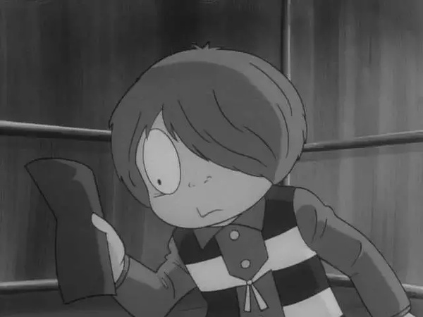据imdb资料显示,本片有参考高畑勋的动画《怪物鬼太郎》(ゲゲゲの鬼太郎,1968),具体哪里有参考呢?对照便知,久保的发遮眼造型就是鬼太郎的翻版。而纸芝居版的鬼太郎漫画前身是“奇太郎”,创作于1933年至1935年间,由民间故事《子育幽灵》(子育て幽霊)改编。《魔弦传说》开场的母女戏应当也有借鉴八幡浜市的绘画作品《子育幽灵》中的母女二人,我猜。