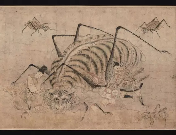 久保表演折纸故事时做了一只纸蜘蛛,还有半藏那身披风上的蜘蛛图腾,造型应当是妖怪「土云」。它是一只巨型蜘蛛,传说长着鬼脸与虎身,可幻化成美女和少年。相传日本武士源赖光在寻找大骷髅的路上就遭遇过土云,后者就曾变身勾引武士,终被识破打回原形。《魔弦传说》中纸武士与纸蜘蛛大战的戏码,算是再现了这场打斗。