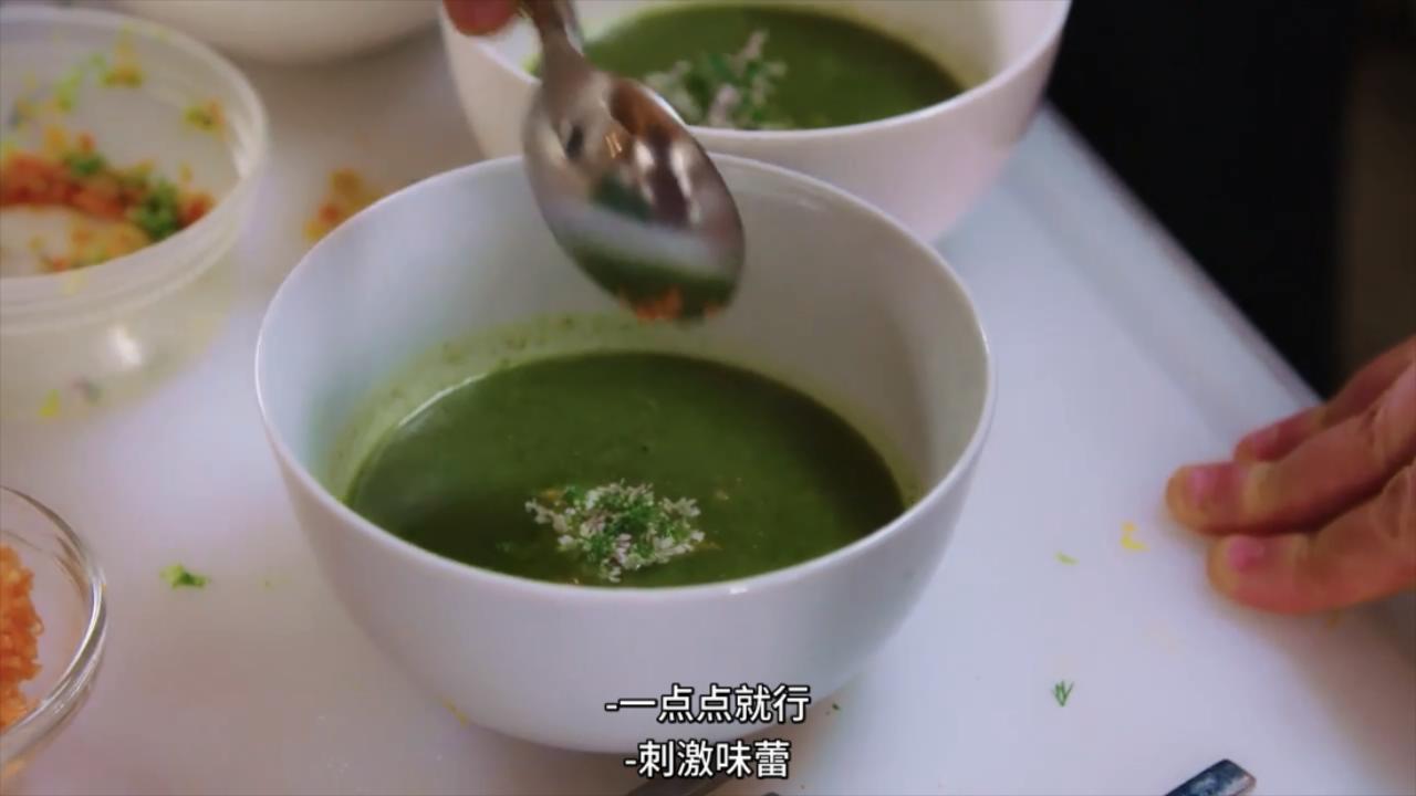 5、将汤盛入碗中,加新鲜的苏格兰斯科奇博纳特辣椒、橘皮碎,最后芫荽花点缀即可。