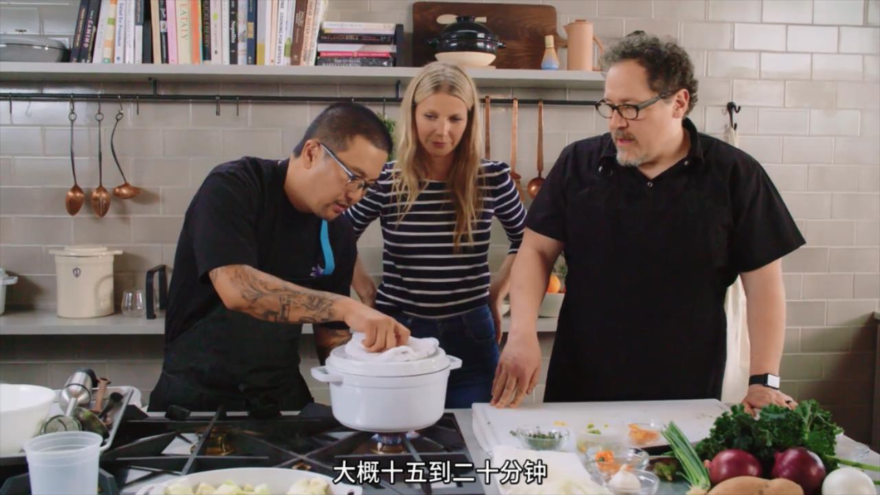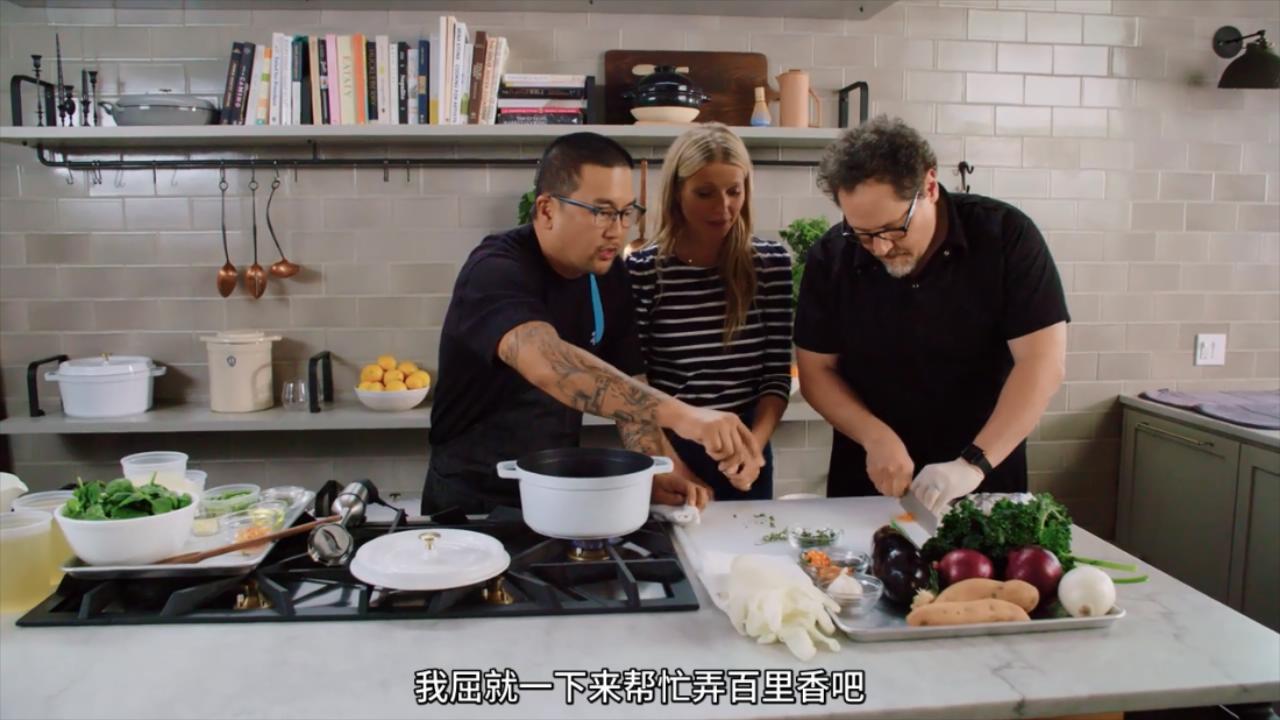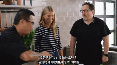 好莱坞女影星“小辣椒”格温妮丝·帕特洛来到厨房,和乔恩·费儒、大厨罗伊一同制作黑暗料理---小辣椒汤;
