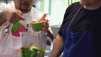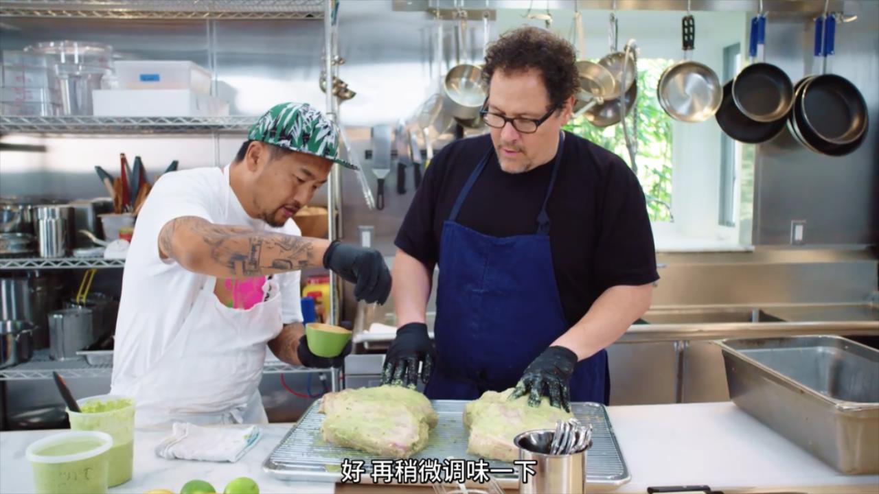 接下来乔恩·费儒和罗伊独立完成了古巴酱烤猪的制作。