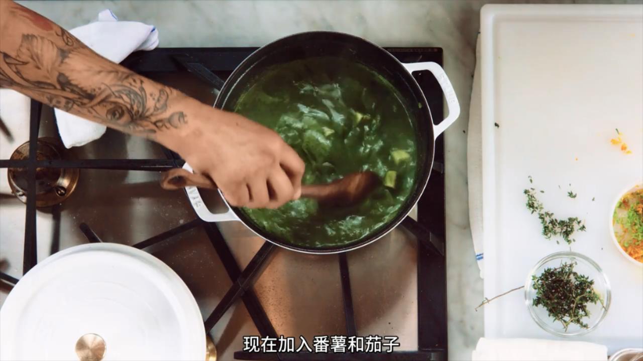 材料:苏格兰斯科奇博纳特辣椒、百里香、洋葱、葱、葱头、茄子、甘蓝、西蓝花、番薯、橘皮、芫荽花、橄榄油、盐、黑胡椒