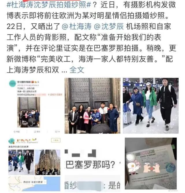 《女儿们的恋爱》结束后,传出杜海涛和沈梦辰一起去巴塞罗那拍摄婚纱照,之后被工作人员澄清只是宣传。