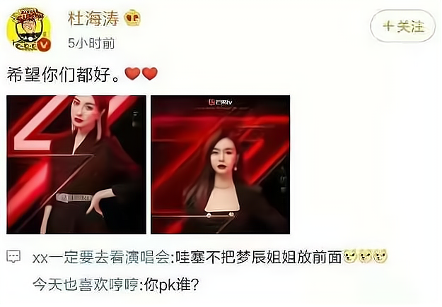 吴昕和沈梦辰一起参加浪姐,杜海涛的打call博文中,吴昕放在沈梦辰之前,就连网友都看不下去。