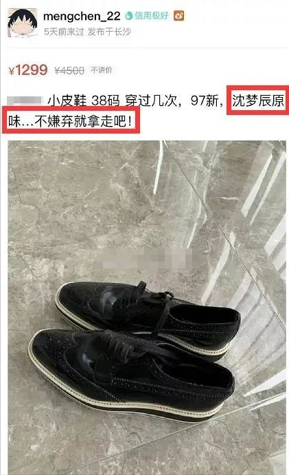 这还不算什么,沈梦辰出售的二手鞋,写上了“沈梦辰原味”这样的话,网友觉得难以接受。