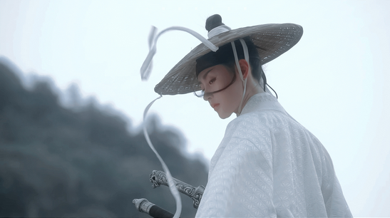南宫仆射出场时以一袭斗笠白衣出镜,配合着冷艳眼神和过硬颜值,一个又美又飒的侠客形象浮现而出。