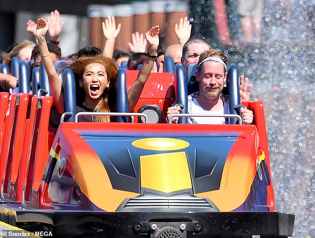 这对情侣坐在根据皮克斯电影《超人特工队》建成的过山车的前排,似乎玩得很开心。当过山车起飞时,他们都做了非常滑稽的表情。