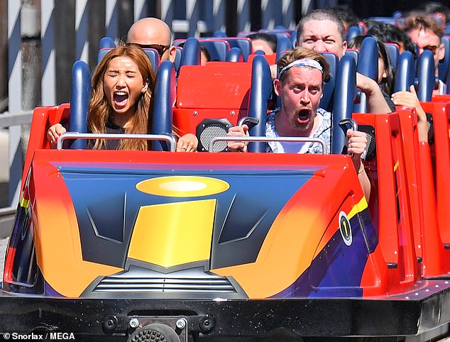 ▲宋和卡尔金在迪士尼坐过山车