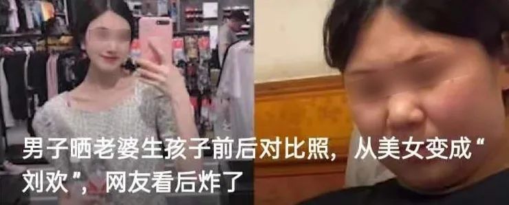 从照片上看,女子婚前肤白貌美,身材纤瘦,妆容发型都精致,可是结婚生娃后,仿佛判若两人,男子笑称: