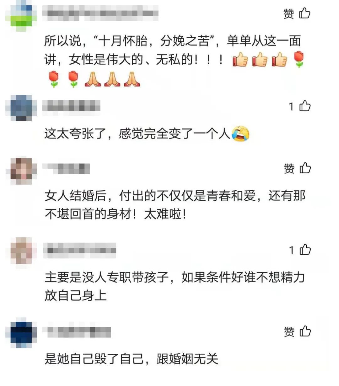 可能是怀孕后,耻骨分离的疼痛让她们走路都困难,更没办法去运动去保持身材。