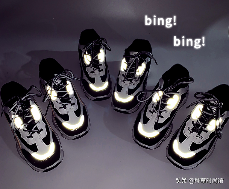 很特别的是,鞋面还用了3m发光材料,即使是在晚上,穿着它你也能成为人群中最靓的那一个!