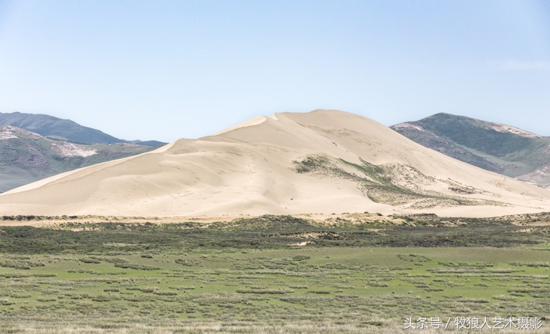 图2:2015年6月21日摄于青海省青海湖景区青海湖景区内很多沙丘的堆积,大面积的连成片,期间有做固沙、退沙等措施,但未见明显收效。