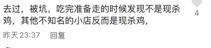 " 还有人吐槽吃完之后才发现,这些所谓的柴鸡都并非现场宰杀,反而不如有些不知名的小店。另有一些网友表示性价比太低,服务质量低,价格还贵,最便宜的一锅鸡要600多,更表示“去了一次就不会再去了”。