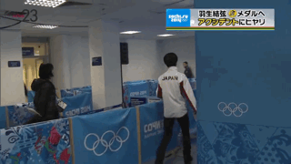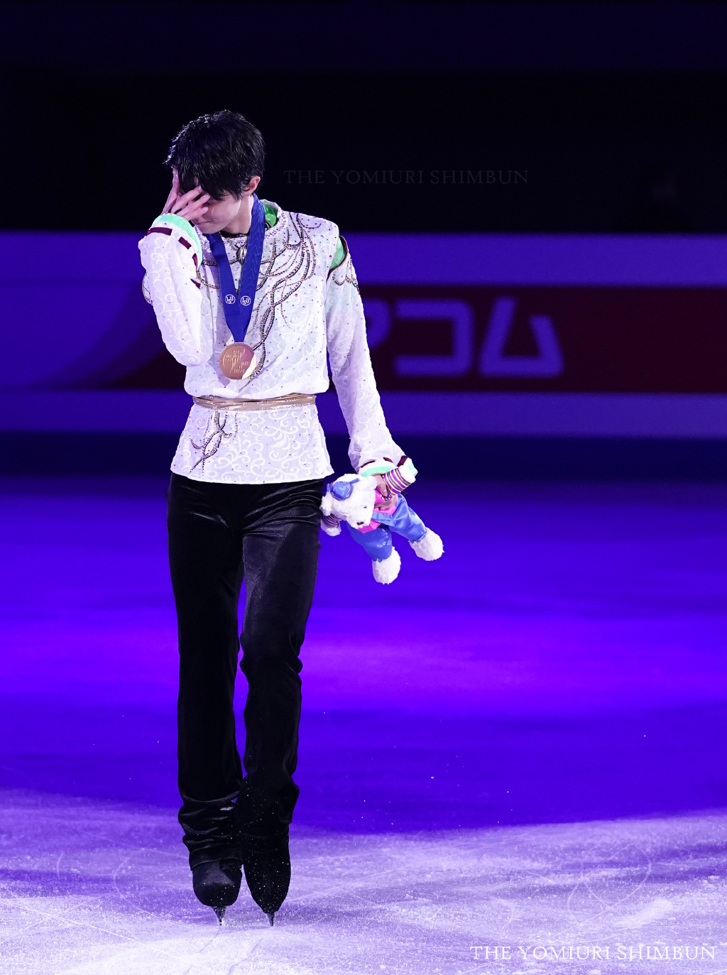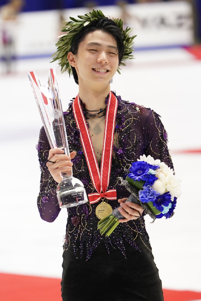 2019年的nhk杯上,在夺冠后合影时,他也这样在冰上走过一次太空步呀!