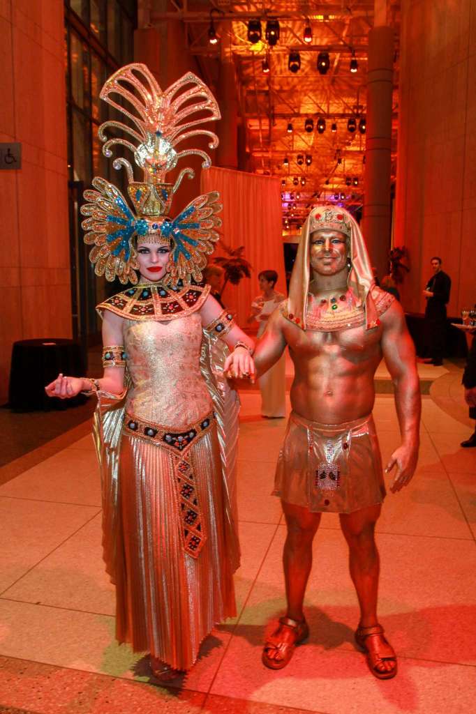 2两位骆驼在进入博物馆时向客人致意,然后尼罗河沿岸的旅程继续进入大厅。在那里,克娄巴特拉和国王图特,以及他们的法庭,提供了热烈的欢迎。联合主席珍娜和哈里斯朱尔