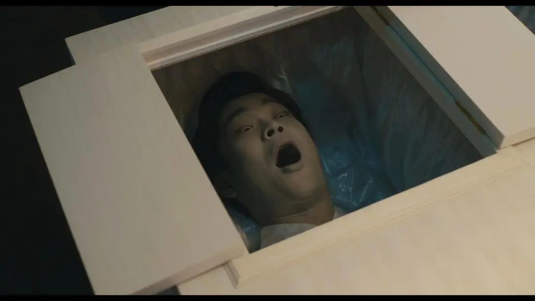 随后镜头一转,老公已经将妻子残忍杀害,并且剖出了她腹中的婴儿。(这一段是前中期剧情的一个爆点,将血腥和诡异进行到了极点。)但是,被他剖出的婴儿,却仿佛有生命一般,哭喊着爬到了他的身上……