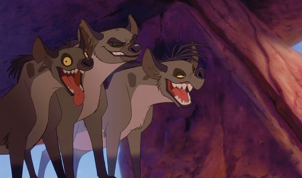 《狮子王》中会给小朋友们留下童年阴影的莫过于跟随在刀疤身边的三只小弟——鬣狗,从动画片中来看,三只鬣狗从外表上来看很可能是斑鬣狗或者条纹鬣狗。