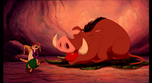 丁满和彭彭是《狮子王》里令人羡慕、无忧无虑的好搭档,它们不仅搭救了逃亡落难的小辛巴,还教会它吃肥腻的虫子,追逐蝴蝶,在水池边嬉戏等各种求生和生活技能。它们那首哈“hakuna matata”之歌更是成为不少人快乐的泉源,而它们的原型狐獴和疣猪同样是非洲大陆上的“乐天派”。