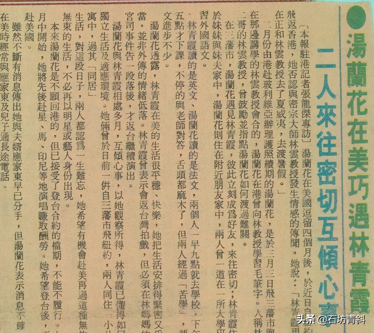 当年,林青霞为了逃避感情跑到了美国,而汤兰花则为了还债也来到了美国,两人从那时候在美国成为朋友