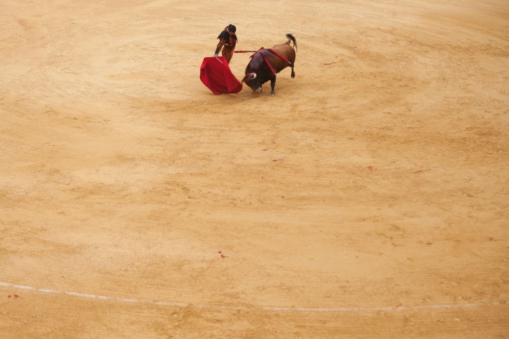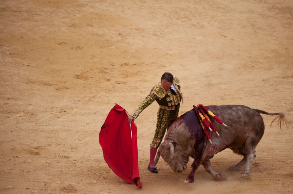新华社照片,外代,2017年6月16日(外代二线)西班牙斗牛士6月15日,在西班牙格拉纳达斗牛场,西班牙斗牛士佩佩·圣路易·巴斯克斯进行斗牛表演。新华社/法新