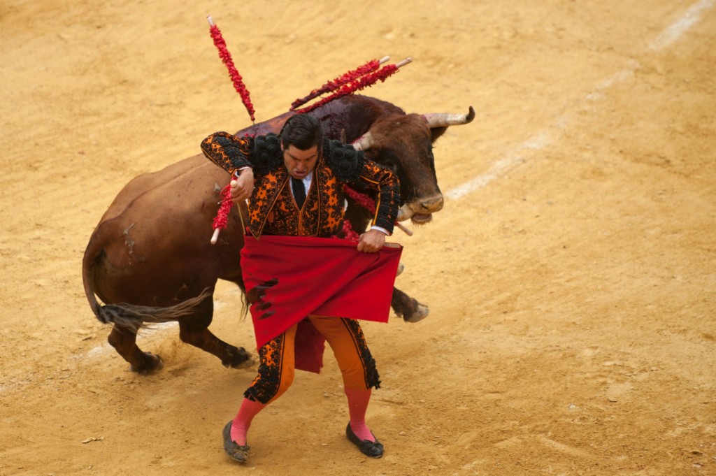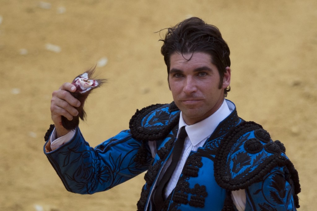 新华社照片,外代,2017年6月16日(外代二线)西班牙斗牛士6月15日,在西班牙格拉纳达斗牛场,西班牙斗牛士卡耶塔诺·里韦拉拿着战利品。新华社/法新