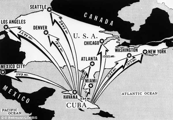 此后,美国策划了旨在推翻卡斯特罗政权的猪湾事件,苏联和古巴则搞出了古巴导弹危机,双方剑拔弩张,长期敌视。