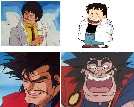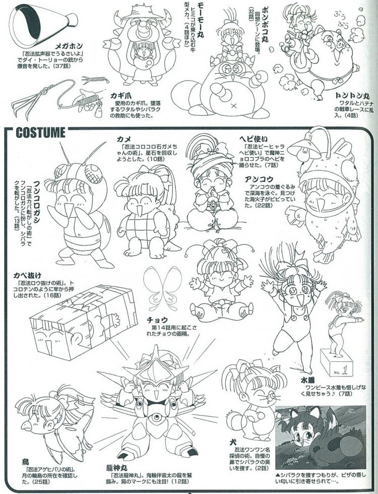 至于施巴拉古大师,当时芦田丰雄还是动画《阿拉蕾》的作画监督、因为喜爱鸟山明笔下的则卷千兵卫的形象,因此把施巴拉古也设计成了一个脑袋很大,说话蠢笨憨厚但心地善良,偶尔正经耍帅却老是破功的样子。而爆炸头则是芦田灵机一动的产物。