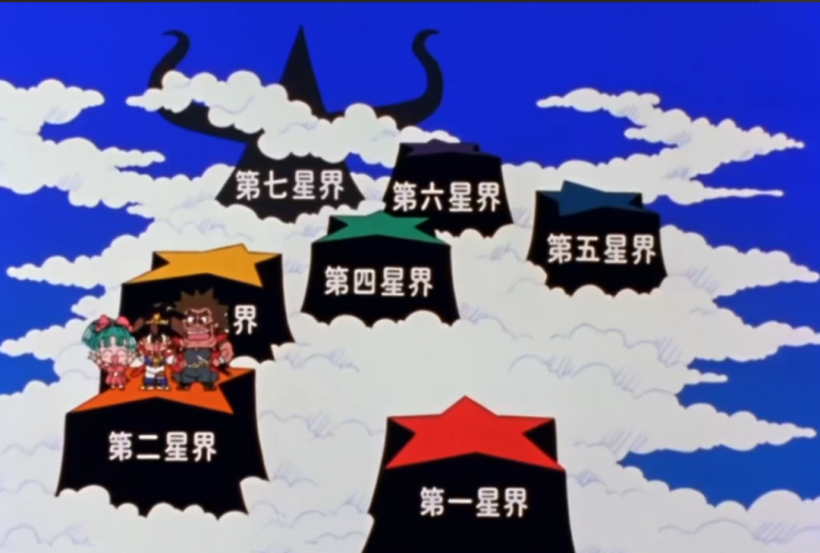和同学们正在玩飞盘游戏的主角被神龙召唤回了神部,被圣龙妃赐予了星龙剑的他带上了神奇饭团,飞盘等道具,原本想着坐火箭拉风帅气的前往星界山,却被绑在神龙斗士身上用一个硕大无比的爆竹上了天(笑)。主角团新一轮斩妖除魔拯救世界的故事就这样开始了。