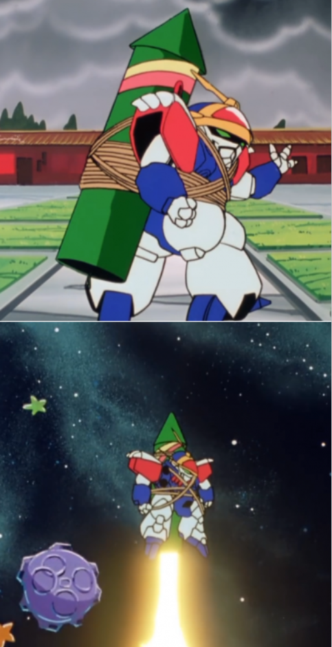 龙星丸是所有系列里主角的机体升级版中唯一一个直接出场而不是靠二段变身的,而它出场时左手握拳右手张开的形象也是独此一家。闪瞎眼的土豪金造型、拉风的光龙剑、激昂的小号声,着实让儿时的我们热血沸腾。