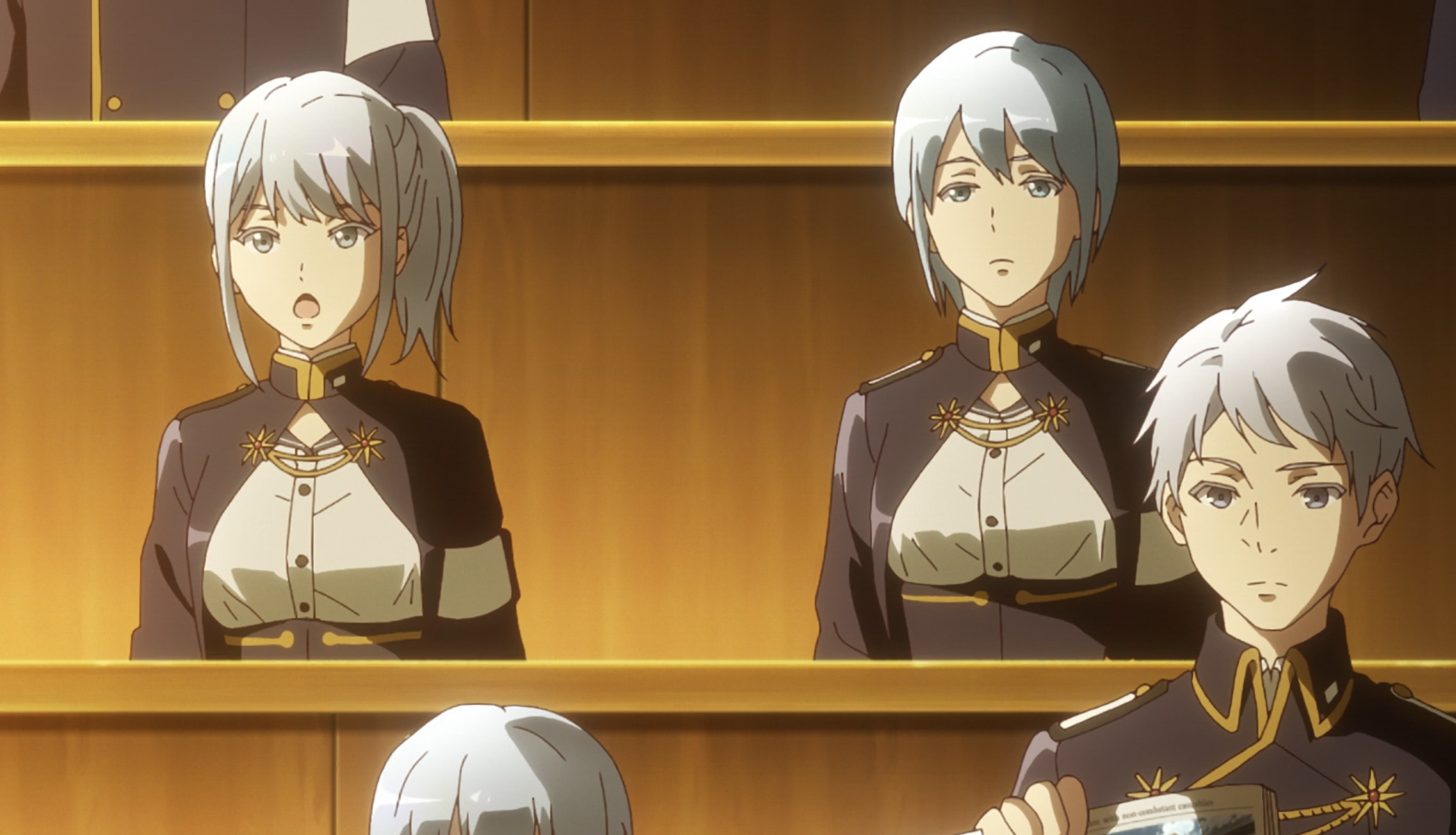 此番由a-1picture改编,目前更新4集,质量在4月新番里属于中上乘,本作涉及了虚构的科幻战争题材,人设是突出制服卖点的白毛人设。