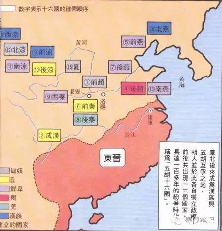 五湖十六国,数字代表建国顺序