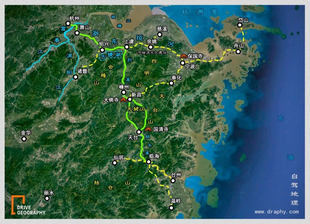 各方文人都可以较为轻易地抵达杭州,继而游历“浙东唐诗之路”——渡钱塘江、游览绍兴古镜湖后,经浙东运河到越州(今绍兴),沿曹娥江、剡溪溯流而上,经新昌沃江、天姥,最后至天台山,一路留下灿烂的诗篇,有的甚至不满足于天台山,开始新的探索。