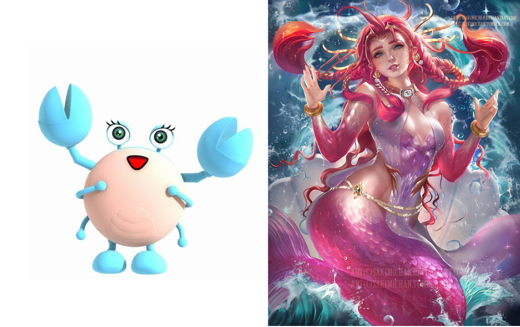 佳佳事在第六季才登场,特征是有一对温柔的大眼睛和一对蓝色的巨大钳子,而为了家人她会勇敢直面困难。往往巨蟹座的人都非常热情好客,对待朋友就像对待家人一样。但是,巨蟹座的人虽然看上表面坚强,但可能私底下却有点内心憔悴。而巨蟹拟人化后,可以看到她的发型就像两只大钳子一样,十分喜感,但丝毫掩盖不了她的柔情似水。