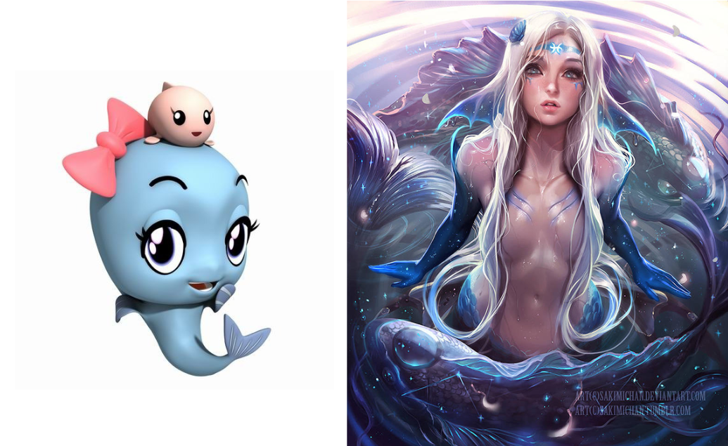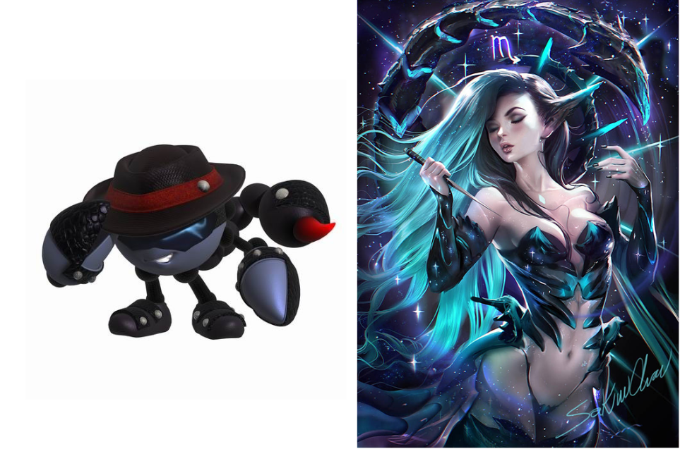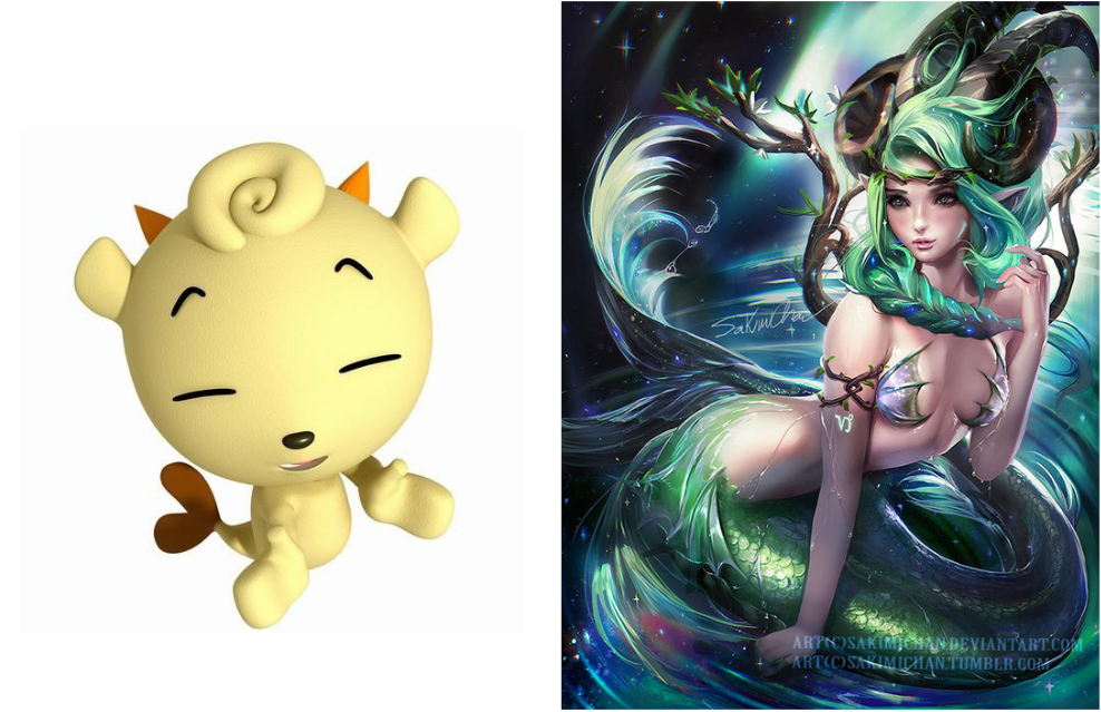 身为摩羯族的阿杰,平时一副眯眯眼的样子,让人很难猜到他在想什么,特点是能将自己的意识脱离本体,与电脑或者人进行交流,非常有趣的能力。往往摩羯座的人都很务实上进,品质坚韧。而摩羯拟人之后,就将“上羊下鱼”的特征表现出来了,翠绿色的半人鱼和头发,加上头顶那两对奇特羊角,这种生物是否来自异度空间呢,魔幻又美丽?