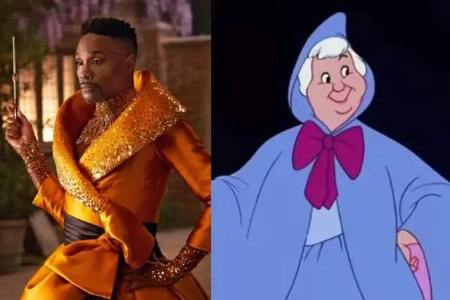 仙女教母更是直接大刀阔斧的改,由黑人男星比利·波特扮演,造型浮夸至极,妥妥的变装皇后。