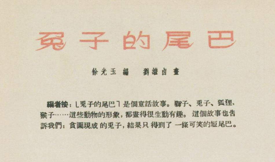 兔子的尾巴是由内详主演的一部动漫。 私下以为,值得鉴赏有一点精神的故事进行放大制作成“小人书”,以供欣赏。选自1955年3月《连环画.. 更多