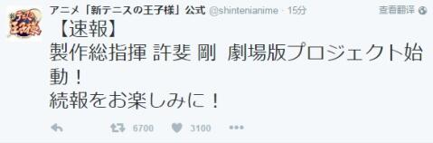 《网球王子》是日本运动漫画中非常成功具有持久高人气的漫画,根据原作漫画制作的动画版《网球王子》2001年开播,共178集,《新网球王子》动画2012年播出,此外还改编有真人电影和电视剧、舞台剧、游戏、ova、剧场版等等。最近的动画是2014年到2015年发售的《新网球王子》ova。在这次的新剧场版之前《网球王子》已经有两部剧场版《二人的武士》《英国式庭球城决战》,其实许斐刚已经作为歌手艺人出道,之前还曾替《网球王子》动画幕后配音,又曾为动画歌曲作曲、填词,不过漫画创作也没停下,此次剧场版的制作总指挥就是许斐刚本人。而《新网球王子》剧场版的具体制作和上映信息,还有待官方进一步公布。