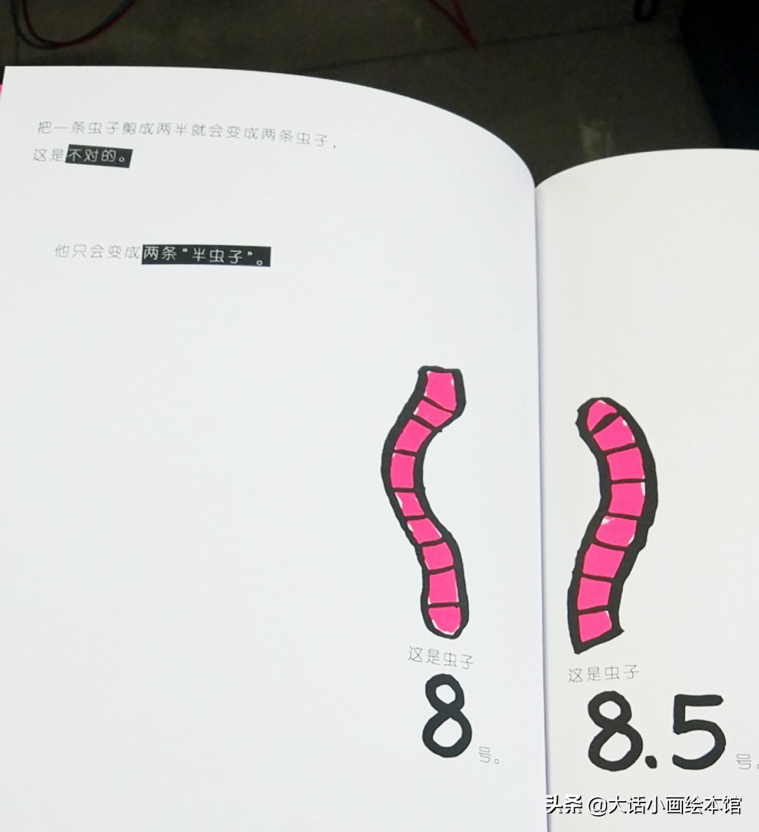 再如,因为一场可怕的意外,8号虫子变成两条“半虫子”,到底是什么意外呢?小朋友们都来想一想吧。