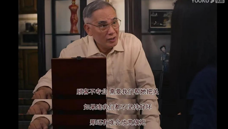 钟世杰的爸爸则是《浮沉》《莲花争霸》老戏骨朱厚任出演,他真诚和蔼、善解人意,还经常开导家人。老人毕生追求着旗袍工艺,虽然随着时代发展,生意越来越难做,他依旧让学旗袍的梅芳草严格把关,不能糊弄顾客。