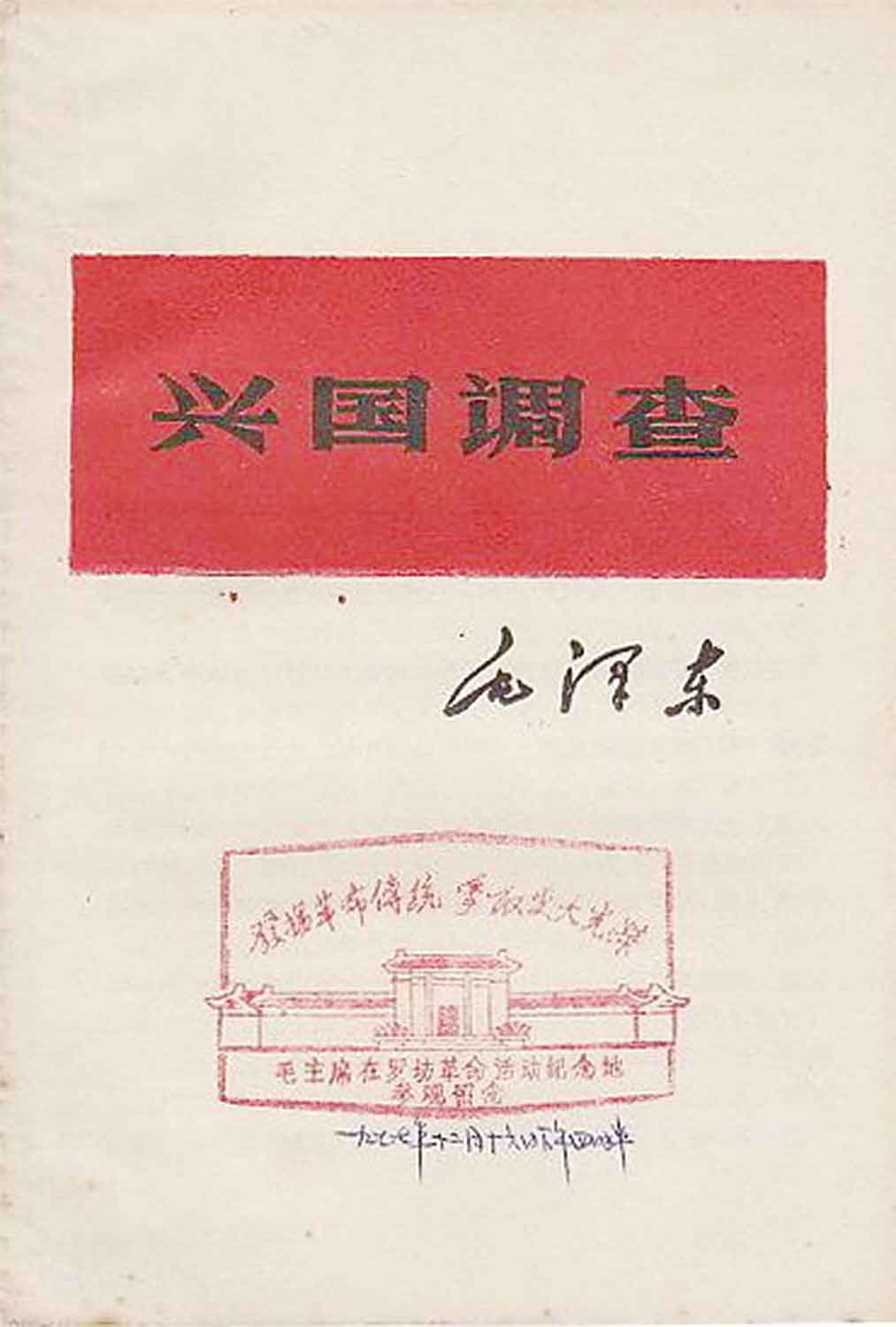 不久后,兴国红军预备队八连连长温奉章和指导员傅济庭来到红一方面军总部驻地——罗坊街上“彭益春木行”的店堂。毛泽东热情地接待了他们,表明了自己希望邀请多位兴国籍红军预备队员前来配合做调查的目的。